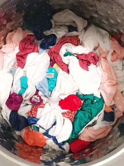 We don’t put poop in the machine though (read what we do with it here) and there is definitely a particular washing routine we use.